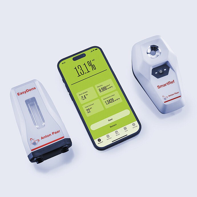 easydens&smartref组合结合了密度和折光,用于测定发酵和成品啤酒、葡萄酒、康普茶、硬苏打水、利口酒和苹果酒中的酒精含量通过移动应用程序,您可以访问一系列功能,包括自动温度补偿、特定应用的校正以及控制测量条件的能力。