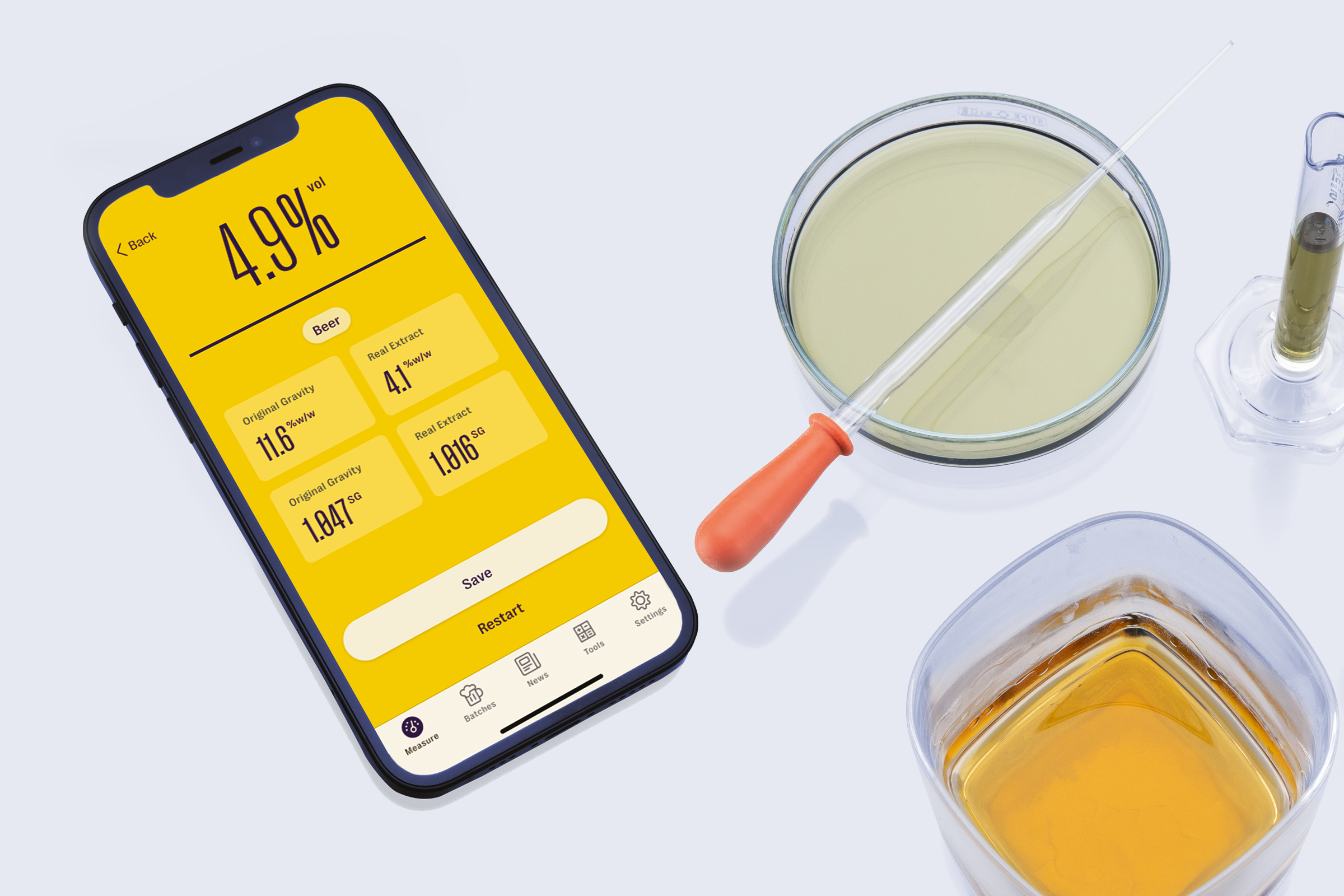 - 通过应用程序对啤酒、葡萄酒、烈酒、酒精气泡水和康普茶执行测量
