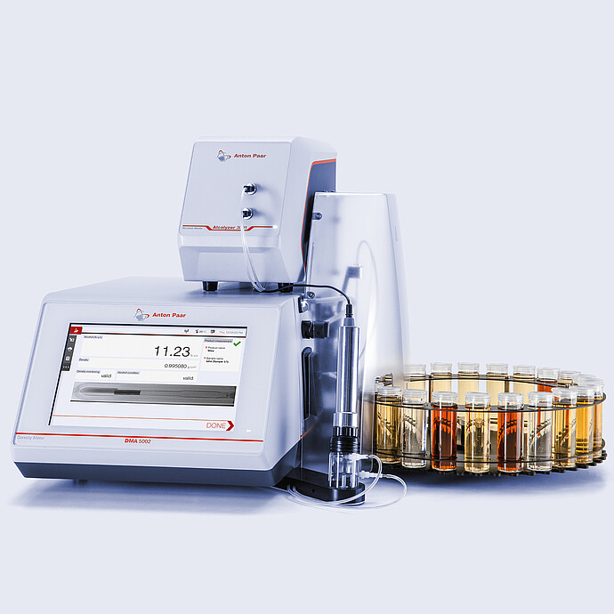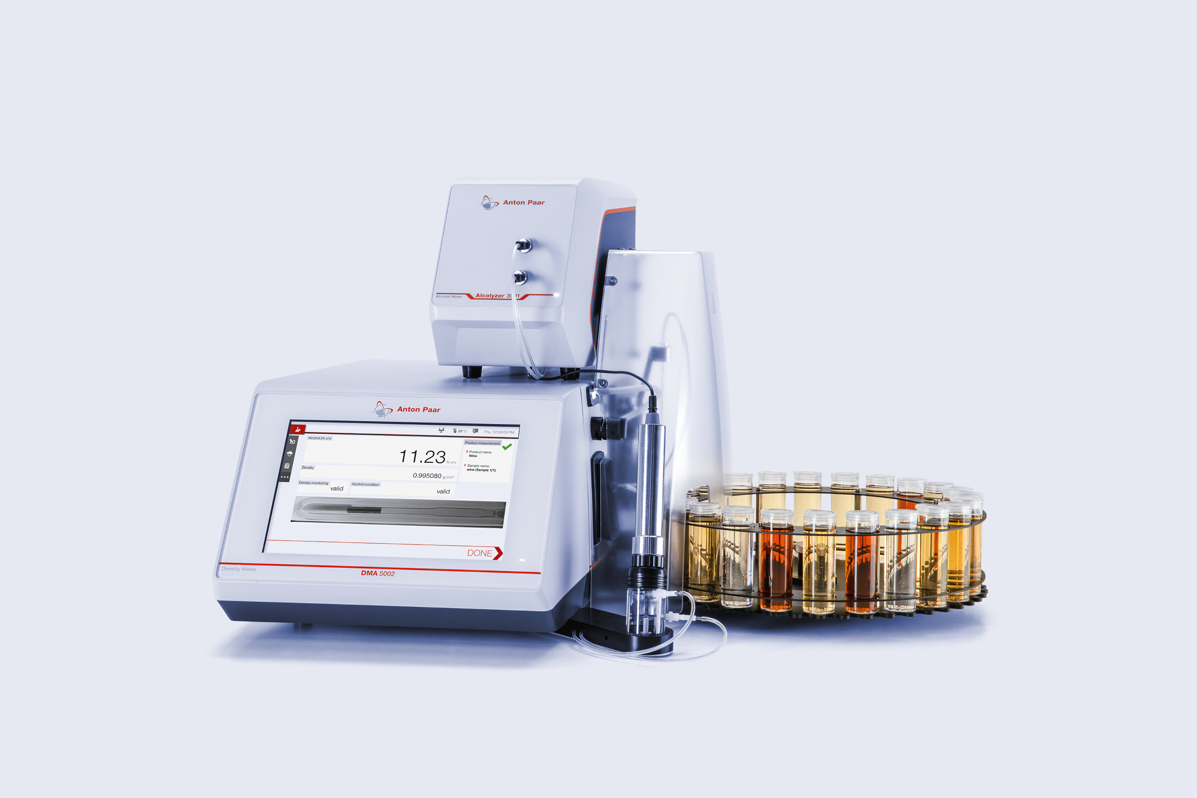 内置全自动 sop 将指导您完成校准和校正程序——使用水和一种二元溶液即可完成。新配方无需担忧,酒精测量系统可直接测量所有样品,一次校准即可就绪。