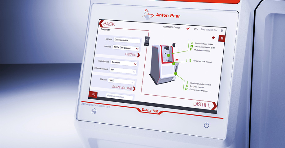 安东帕的 diana 馏程测定仪系列 - diana 700 和 diana 300 - 能够在大气压下自动进行高精度馏程分析。