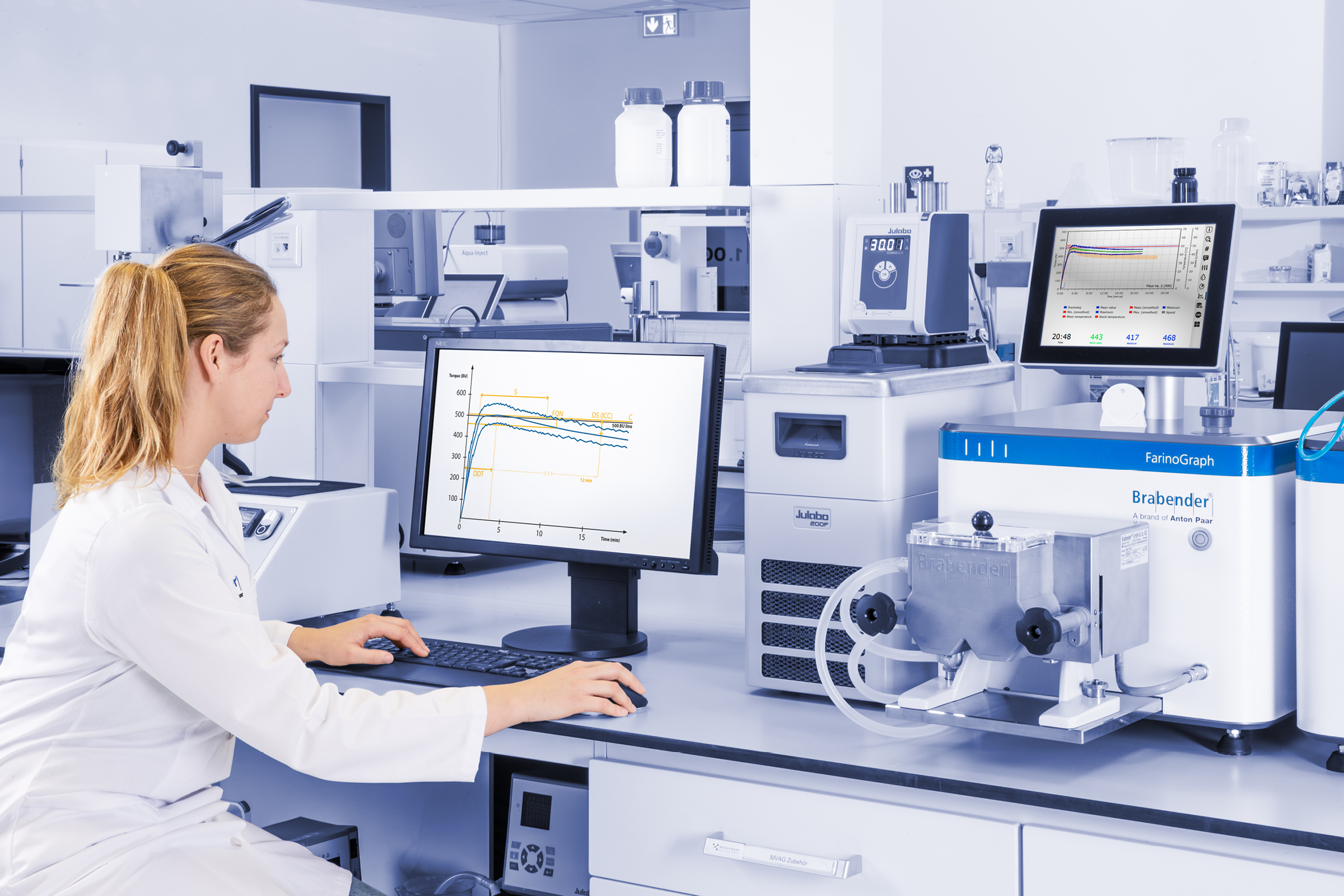 著名的 brabender 三相系统是一个能够模拟整个烘焙过程的多设备系统。farinograph 可深入了解吸水性和揉捏面团的行为。extensograph 可以检查拉伸和加工特性,确保您的面团符合更高标准。amylograph-e 是分析糊化和酶活性的更佳选择。