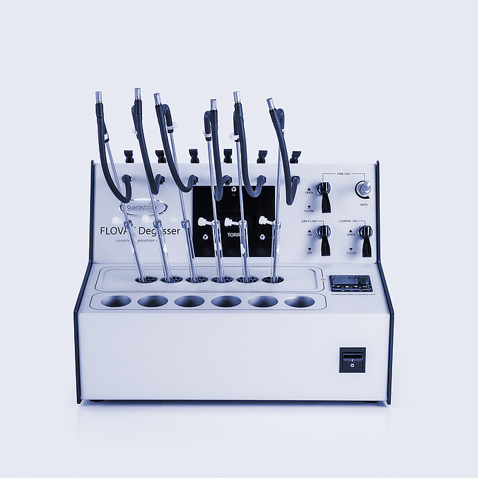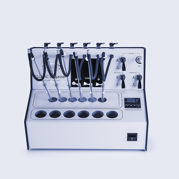 集流动脱气与真空脱气功能于一台仪器,配备智能的温度控制器和可调节气体流量阀。可同时对六个样品进行脱气,且能在冷却室中同时六个已处理过的样品。