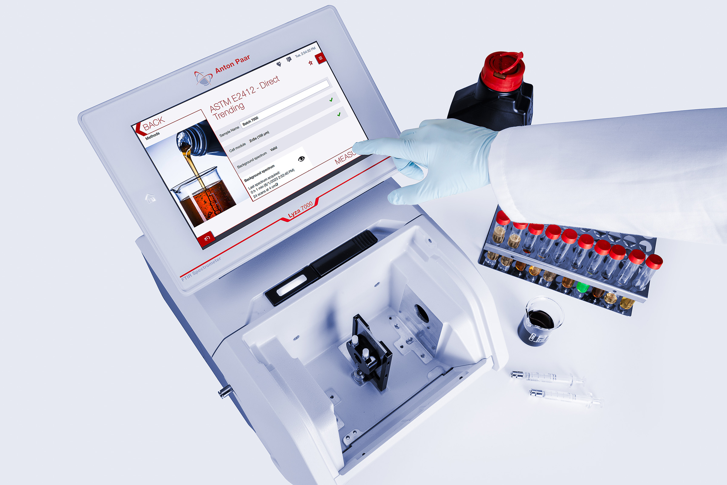 使用安东帕 ftir 光谱仪,只需轻点一下屏幕即可完成油品分析。预安装的方法包和相应的透射池确保符合 astm 和 din 标准。该软件将测量、光谱处理和分析进行无缝集成。自动化的工作流程和可定制的报告使得油液状况监测变得超级高效。