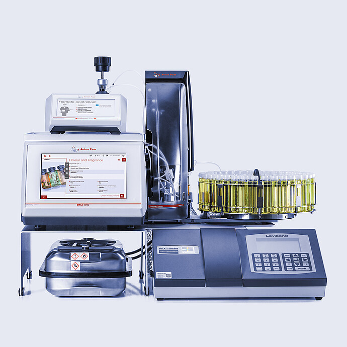 香精香料通常需要昂贵且耗时的提取。香精和香料测量系统提供了综合测量(密度、折光率)及选配参数(旋光度、色度),以减少质量控制所需的样品量并极大降低分析成本——尤其是玫瑰油等物质。根据模块的不同,它可以在每个周期低于 10 ml 下运行,允许在测量后回收样品,并保留您贵重的提取物。