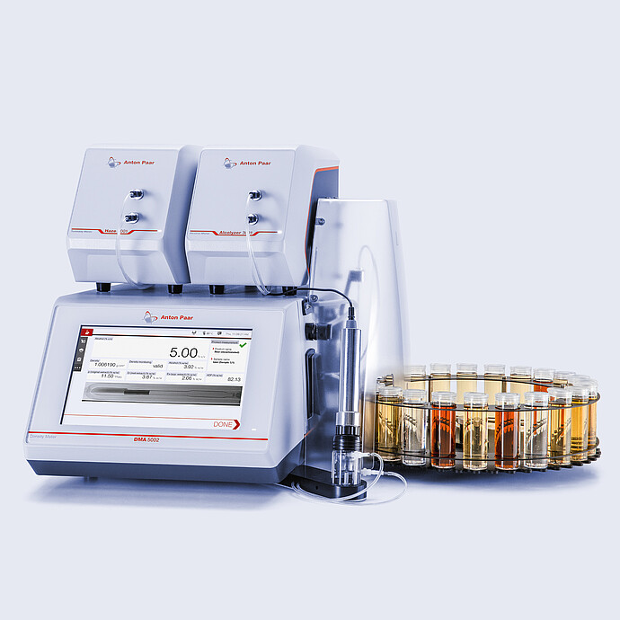 葡萄酒测量系统可测定各类葡萄酒的酒精含量,从而确定您的产品规格和是否符合法律要求。只需使用水和二元溶液进行一次校正,即可获得符合葡萄酒中酒精测定参考方法的结果。安东帕的数字式密度计基于 u 型管振荡原理,已经得到了税务机构和海关实验室的批准。通过一次性分析您的样品,简化您的日常工作,并立即获得准确、合规的结果。